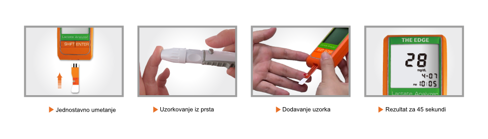 Rezultat na ručnom analizatoru laktata THE EDGE je kvantitativan i gotov je za 45 sekundi, a dobiva se iz malog uzorka (3µL) kapljice kapilarne krvi prsta odmah pokraj ispitanika. Dobiveni rezultati su pouzdani i usporedivi s onima dobivenima u laboratoriju. Analizator je prijenosan te se napaja putem baterije što mu omogućava korištenje gdje god je potreban na terenu.